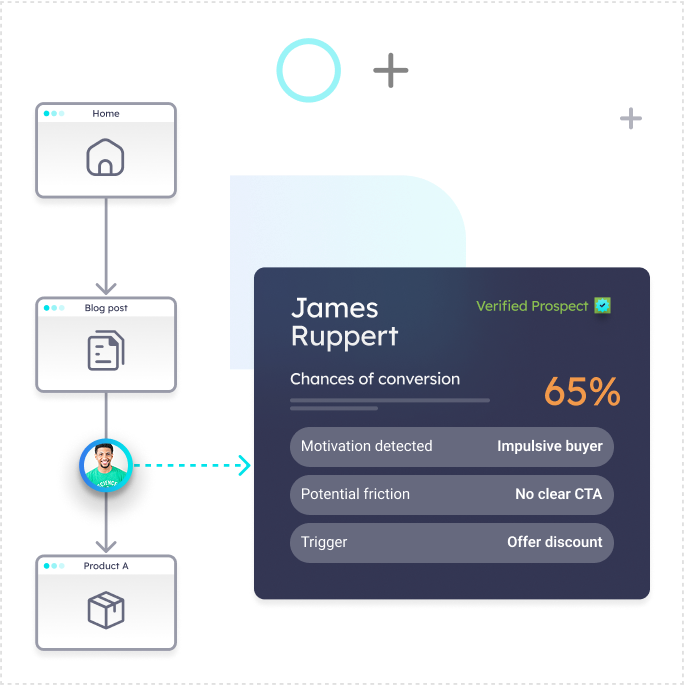 Based on these interactions, Pathmonk predicts the visitor’s stage in the buying journey—whether they are just browsing, comparing options, or ready to make a purchase.