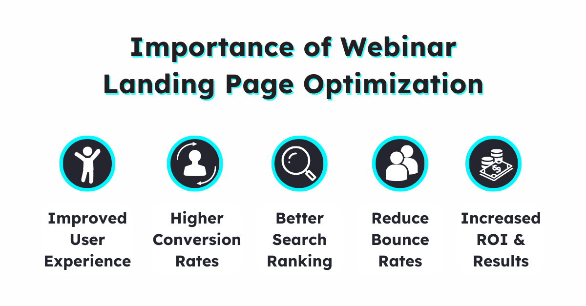 Optimizing your landing page ensures that visitors have a seamless and enjoyable experience. A well-designed landing page with a clear message, fast loading times, and a user-friendly layout can significantly improve the overall user experience. This not only helps keep the audience engaged but also encourages them to take the desired action, in our case signing up for a webinar.